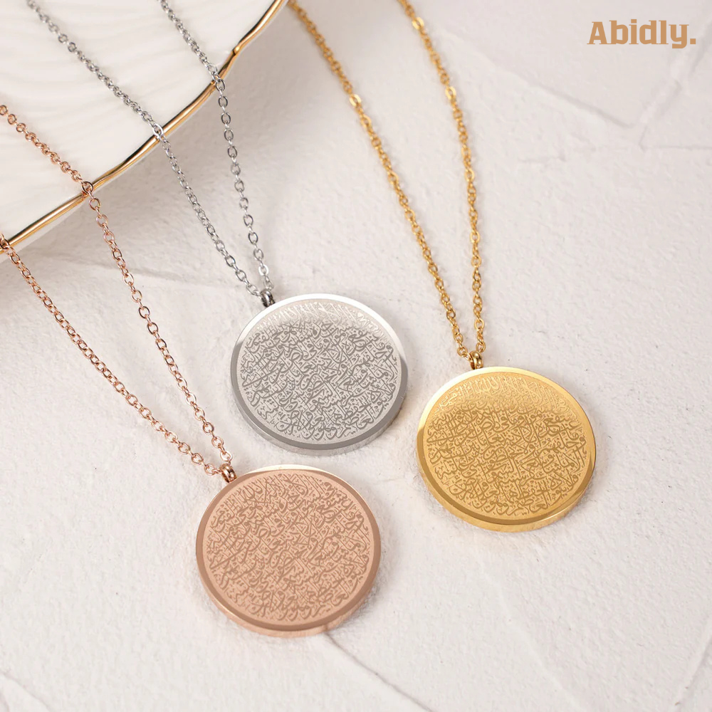 Ayet-El Kürsi is one of the most important verses of the Quran and is very important in the Islamic religion. Ayet-El Kürsi helps people cope with the difficulties in their daily lives and is recommended to be read frequently. A necklace carrying Ayet-El Kürsi provides many benefits to its wearer, both spiritually and aesthetically. This special necklace has an elegant and stylish design and the Ayet-El Kürsi on it provides strong protection to its wearer. This necklace is an elegant piece of jewelry that you can wear in your daily life and also serves as a keepsake for you